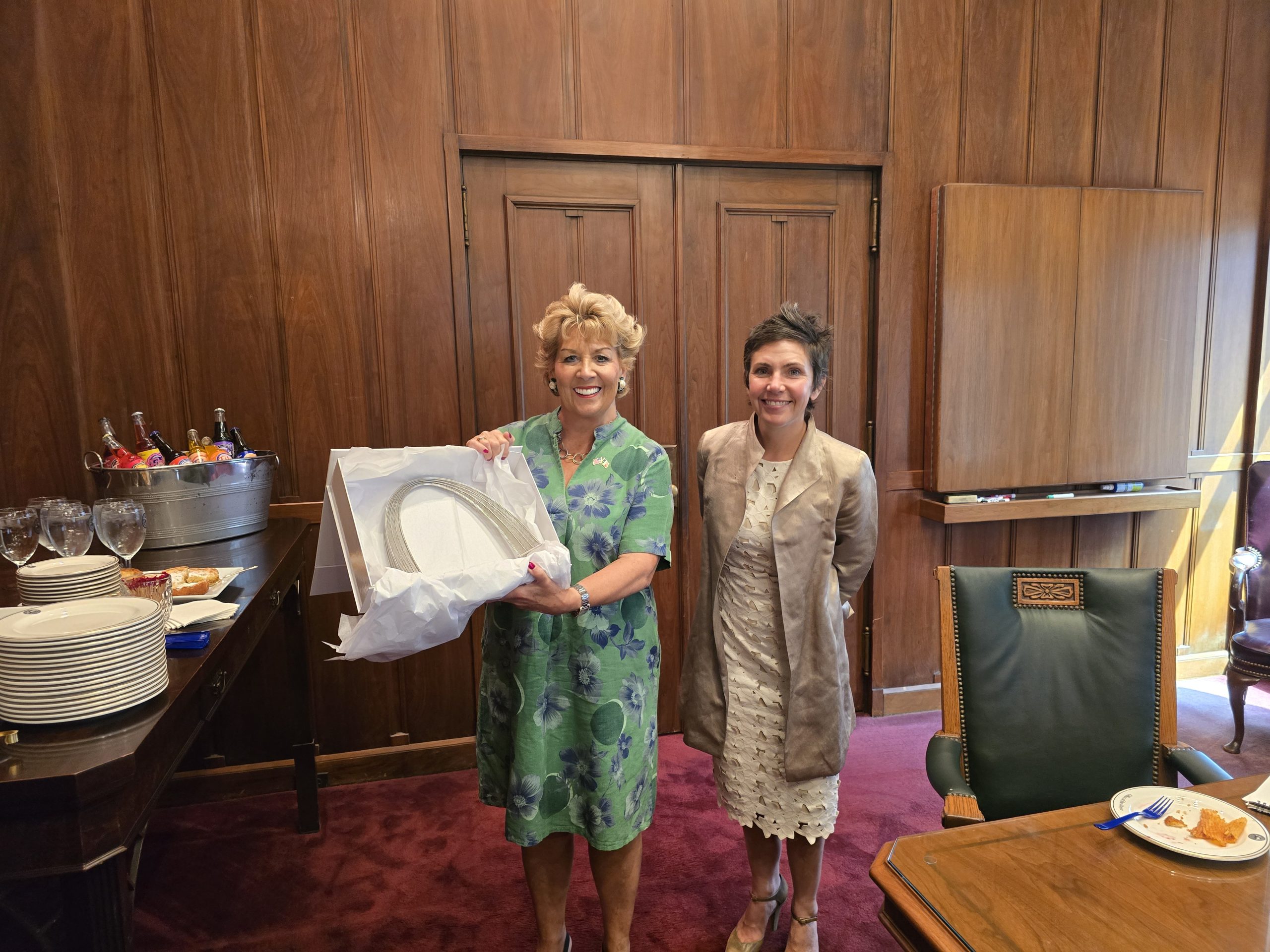 Ireland’s ambassador to the U.S., Geraldine Byrne Nason, recently spent three days in Missouri, including visiting St. Louis on August 28. Ambassador Byrne Nason’s visit included meeting Missouri Governor Mike Kehoe and St. Louis Mayor Cara Spencer. She also attended an executive roundtable—that was organized by World Trade Center St. Louis (WTC) and Greater St. Louis Inc. (GSL)—held at GSL, plus the Global Health Innovation Summit planned by BioSTL. She also visited St. Louis Irish Arts for some traditional Irish music and dance and the University of Missouri-St. Louis to learn about its Irish Studies program.